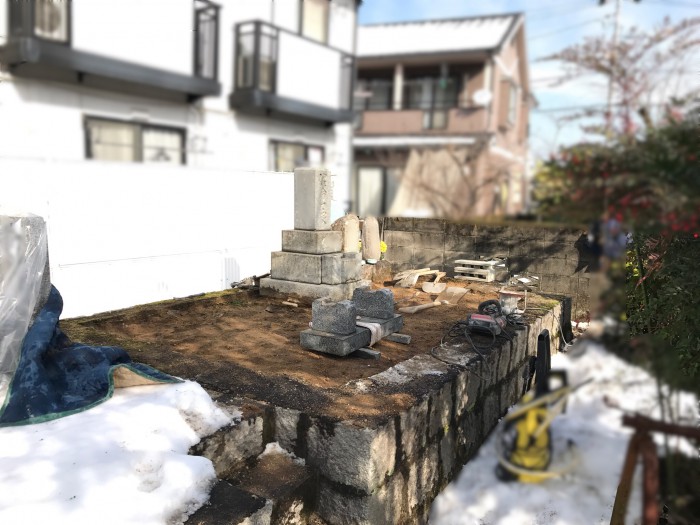 ⬆︎まず、墓地全体の土を削り取っていきます。